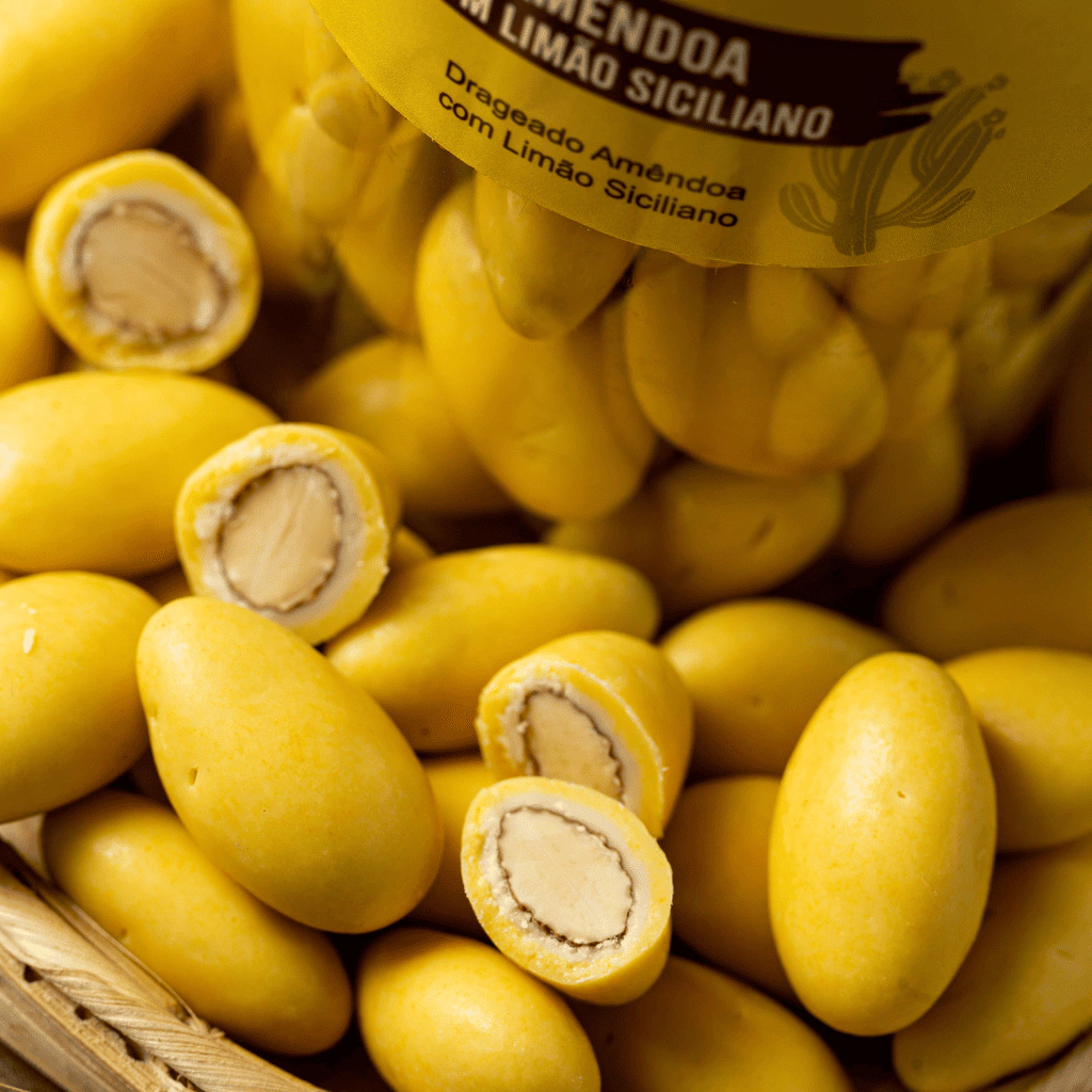 Cada amêndoa é meticulosamente coberta com uma camada crocante de chocolate, infundida com o frescor vibrante do limão siciliano. O resultado? Uma explosão de sabor que equilibra o doce e o ácido de maneira perfeita, proporcionando uma experiência única a cada mordida.🌰💚