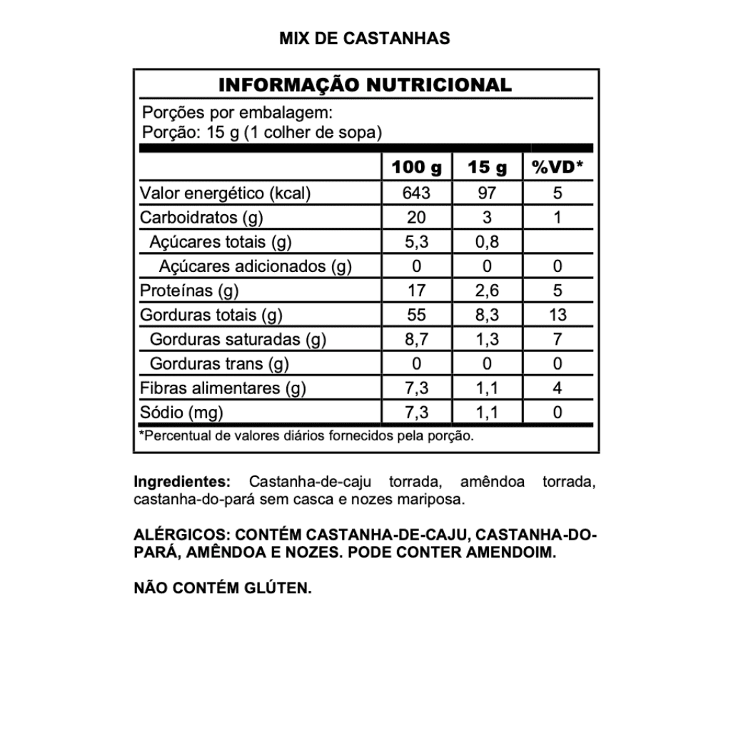 🌰🍃 Uma sinfonia de sabores e texturas aguarda por você no nosso Mix de Nuts. Combinando a riqueza das castanhas, a suavidade das amêndoas e a robustez das nozes, cada mordida é uma jornada gastronômica completa. Diretamente da nossa seleção para a sua mesa, apresentamos um mix que reúne a essência das melhores nuts: Castanha de Caju, Castanha do Pará, Amêndoa Torrada e Nozes Mariposa.
