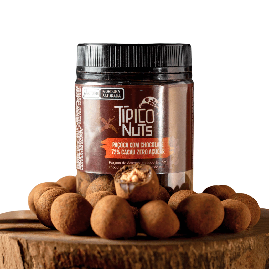 🛍️ Experimente a nossa Paçoca Drageada com Chocolate 72% Zero Açúcar da Típico Ceará e faça parte do grupo de apreciadores dessa combinação que é simplesmente irresistível!